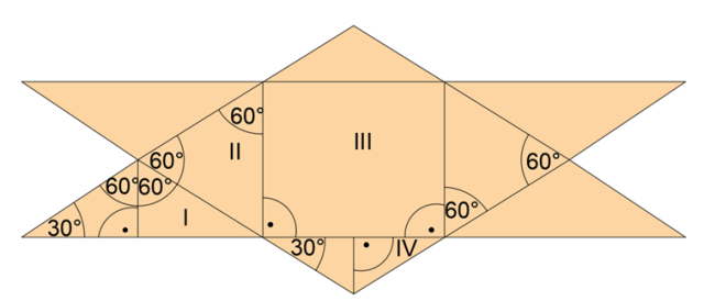 W gwieździe jest 8 trójkątów I, dwa trójkąty II, jeden kwadrat i 4 trójkąty IV. Więc: