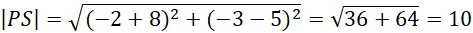 Oblicz odległość wierzchołka trójkąta od środka okręgu. Wiedząc, że połowa tej długości jest promieniem okręgu wyznacz jego równanie.