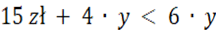 Teraz chcemy dowiedzieć się, kiedy koszt wariantu pierwszego będzie mniejszy od kosztu wariantu drugiego. Oznaczmy minimalną liczbę godzin, przy której to się stanie, jako y.