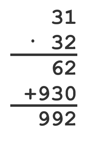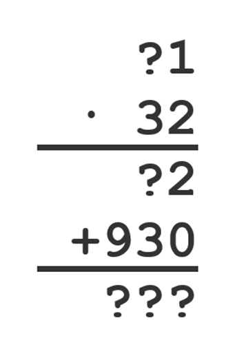 A 3 zostało pomnożone przez ? I dało wynik 9, więc drugi pytajnik to 3. Co daje 31 · 32.