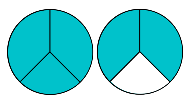 kolorem zamaluj jedno całe koło i dwie części z drugiego