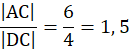 Dla obu trójkątów kąt BCA jest wspólny. Boki przy tym kącie są najdłuższymi bokami w tym trójkącie. Dodatkowo odpowiadającymi sobie odcinkami w trójkątach są: BC i AC oraz DC i AC. Skala podobieństwa na podstawie cechy bok-kąt-bok możesz obliczyć jako stosunki boków: