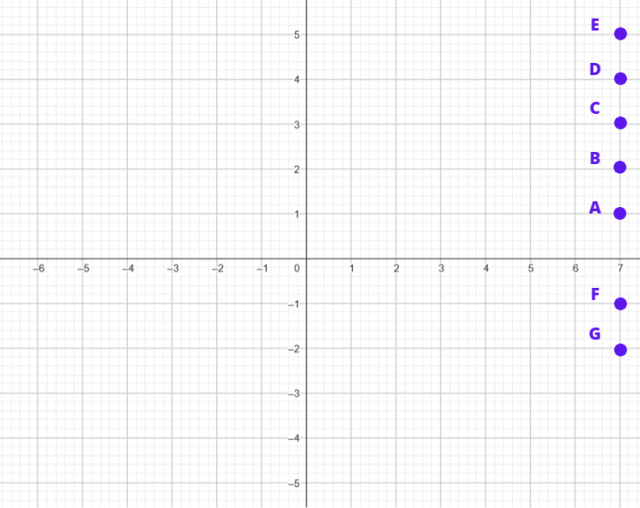 W tym zadaniu zaznacz 6 punktów, których współrzędna x jest równa 7.