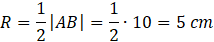 Suma długości odcinków, na które wysokość podzieliła przeciwprostokątną, jest długością przeciwprostokątnej. Wiesz, że w trójkącie prostokątnym promień okręgu opisanego na tym trójkącie jest równy połowie długości przeciwprostokątnej, więc możesz go łatwo obliczyć.