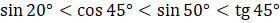 Funkcja sinus dla kątów ostrych jest rosnąca i jest zawsze mniejsza od 1, zatem im większy kąt, tym większa wartość sinusa.