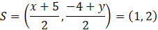 Wyznacz długość odcinka AB, wiedząc, że A(x, -4), B(5, y), a jego środkiem jest punkt S(1, 2).