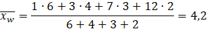 Wyznacz średnią ważoną zestawu liczb z tabeli.