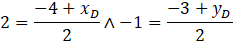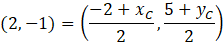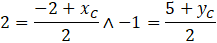Zapisz współrzędne środka odcinka łączącego punkty A i C przy pomocy wzoru, a następnie przyrównaj do znanych z treści zadania wartości: