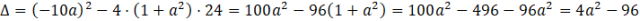 Dostałeś kolejne równanie kwadratowe. Pamiętaj, że jest to osobne równanie niż to które dostałeś z układu równań. Tam, było to równanie ze względu na x i jego rozwiązaniem była jakaś wartość x (czyli pierwszej współrzędnej punktu styczności). Natomiast tutaj zmienną jest a i wynikiem będzie wartość właśnie tego współczynnika. Aby otrzymać wynik wystarczy, że rozwiążesz to równanie kwadratowe, przez przeniesienie wyrazu wolnego na drugą stronę.