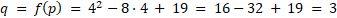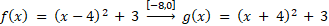 Określ, o jaki wektor należy przesunąć wykres paraboli o równaniu y = x2 – 8x + 19, aby otrzymać wykres o równaniu y = x2 + 8x + 19.