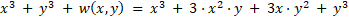 Wielomian w wyznaczamy rozwiązując równanie, gdzie stosujemy WSM: (a + b)3 = a3 + 3a2b + 3ab2 + b3.