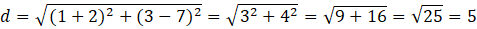 Należy obliczyć odległość dwóch punktów: