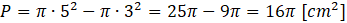 Aby obliczyć pole widocznej części niebieskiego koła musisz od pola koła o promieniu 5 cm odjąć pole koła o promieniu 3 cm.