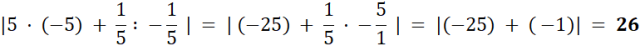 Przyjmij, że x jest przeciwne do y, c to odwrotność x, d to odwrotność y. Dla x = 5 rozwiąż to działanie: |x · y + c : d |.