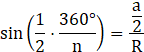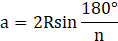 Bok n-kąta foremnego wpisanego w okrąg o promieniu R ma długość