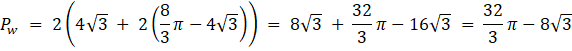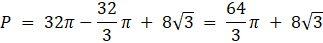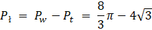 Pole narysowanej figury jest równe dwóm polom koła pomniejszonym o pole części wspólnej:
