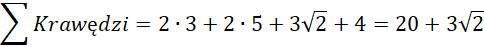 Aby prawidłowo obliczyć sumę wszystkich krawędzi ostrosłupa, należało obliczyć długość przekątnej ściany bocznej oraz podstawy. Znając wszystkie długości, należy jedynie zsumować wszystkie wymagane krawędzie.