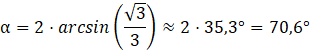 Oblicz miarę kąta między płaszczyznami zawierającymi ściany czworościanu foremnego.