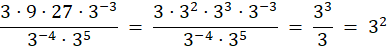 Zapisz wszystkie liczby jako potęgi 3. Skorzystaj z praw działań na potęgach i w odpowiedni sposób pododawaj i poodejmuj wykładniki potęg.