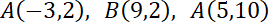 1. Punkty A(-3,2), B(9,2) i C(5,10) zostały podane.