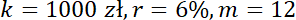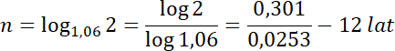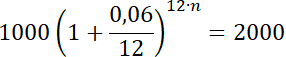 Ile lat potrzeba by kapitał równy 1000 zł, podwoił się na lokacie oprocentowanej no 6% w skali roku i miesięcznej kapitalizacji odsetek?