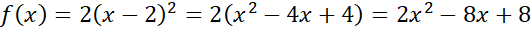 Skoro funkcja ma jedno miejsce zerowe, możemy ją zwinąć we wzór skróconego mnożenia – kwadrat sumy/różnicy i pomnożyć to przez współczynnik kierunkowy.