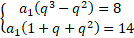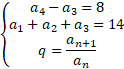 Ciąg jest monotoniczny, więc q wyraża się wzorem: i jest stałe. Z układu równań obliczamy iloraz ciągu: