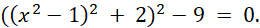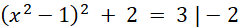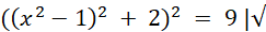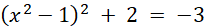 Pierwiastkujemy obustronnie równanie, przez co otrzymujemy 2 równania kwadratowe. Jedno równanie jest sprzeczne. Jeszcze raz pierwiastkujemy obustronnie równanie, aby uzyskać dwa równania kwadratowe, z których możemy uzyskać rozwiązania.