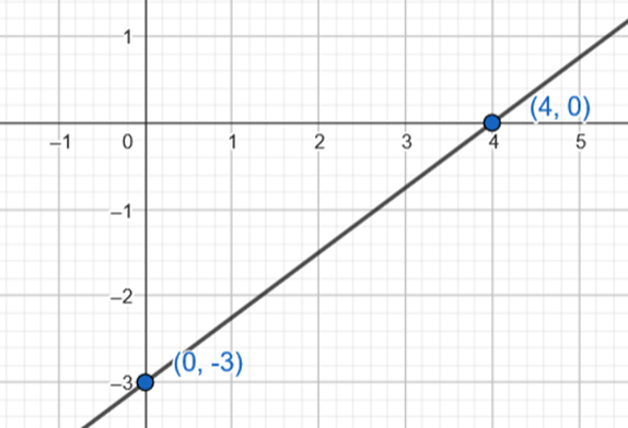 Zauważ, że współczynnik b decyduje o miejscu przecięcia wykresu z osią OY. Więc druga współrzędna punktu (0,-3) jest również wartością tego współczynnika. Dodatkowo miejsce zerowe tej funkcji znajduję się w punkcie (4,0). Skorzystaj z tych własności i podstaw je w miejsce y, x i b we wzorze funkcji, aby obliczyć wartość współczynnika a.