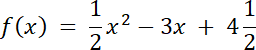 f(x) = 0,5x2 + bx + c, dla wierzchołka funkcji: W(3,0) wzór funkcji f to: