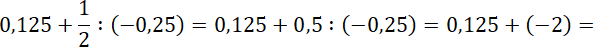 Zauważ, iloraz jest ujemny (dzielenie liczby dodatniej i ujemnej zawsze daje wynik ujemny), a jego wartość bezwzględna jest większa od wartości bezwzględnej pierwszej liczby w wyrażeniu, więc wynik będzie ujemny. Wykonując obliczenia, pamiętaj o kolejności wykonywania działań: najpierw dzielenie, a po nim dodawanie. Aby wykonać dzielenie, zapisz liczby w takiej samej postaci np. jako ułamki dziesiętne. Zamień dodawanie liczby ujemnej na odejmowanie liczby do niej przeciwnej. Wynikiem odejmowania jest liczba przeciwna do różnicy wartości bezwzględnych.