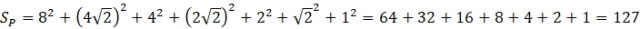 Mając wszystkie długości boków kwadratów oblicz sumę pól wszystkich siedmiu kwadratów.
