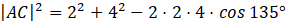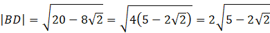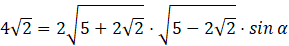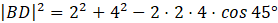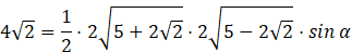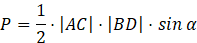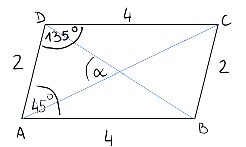 Obliczam długość przekątnej AC i BD z twierdzenia cosinusów oraz sinus kąta przecięcia przekątnych, korzystając z obliczonego pola równoległoboku.
