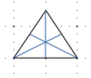 Trójkąt równoboczny ostrokątny. Wszystkie wysokości mają taką samą długość.