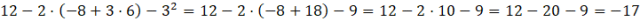 Według kolejności wykonywania działań pierwszeństwo mają działania w nawiasach, następnie potęgowanie, mnożenie i dzielenie, a na koniec dodawanie i odejmowanie.