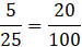 Kwadratów jest 25, z czego 5 jest zamalowane, czyli