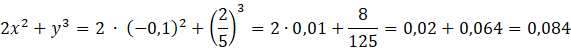 W tym zadaniu musisz obliczyć wartość wyrażenia 2x2 + y3, gdzie x = -0,1 i y =