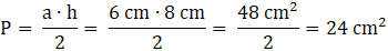 Po znalezieniu długości wysokości, pole wynosi 24 cm2.