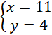 x = 11, y = 4