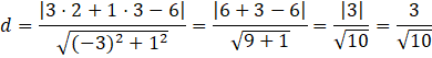 Teraz wystarczy, że odczytasz poszczególne współczynniki z równania, i podstawisz je do wzoru, razem z współrzędnymi punktu A.