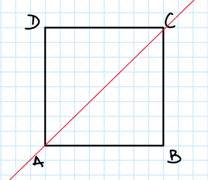 Kwadrat ABCD, prosta przechodzi przez A i C, punkty symetryczne względem niej to B i C.