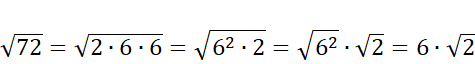 Rozłóż liczbę pod pierwiastkiem na iloczyn mniejszych liczb, a następnie skorzystaj z własności działania na pierwiastkach , .
