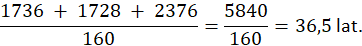 Suma wieku mieszkańców klatki A to 62 ∙ 28 = 1736 lat.