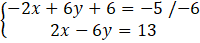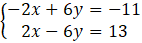 -2x + 6y + 2x – 6y = -11 + 13