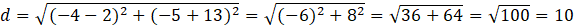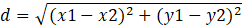 Należy obliczyć odległość dwóch punktów: