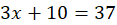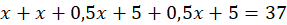 Następnie przyrównaj sumę długości wszystkich boków do 37 cm i rozwiąż otrzymane równanie: