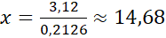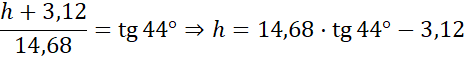 h = 14,68 ∙ 0,9657 – 3,12 = 14,18 – 3,12 = 11,06 m