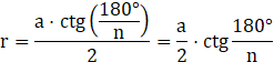 Promień okręgu wpisanego w n-kąt foremny o boku długości a ma długość