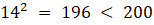 Liczba 14 jest największą liczbą, która podniesiona do kwadratu daje wartość mniejszą niż 200.