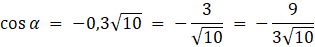 Wartość funkcji cosinus dla kąta α powinieneś zamienić na ułamek zwykły (ta forma będzie wygodniejsza do wykonywania obliczeń):